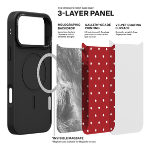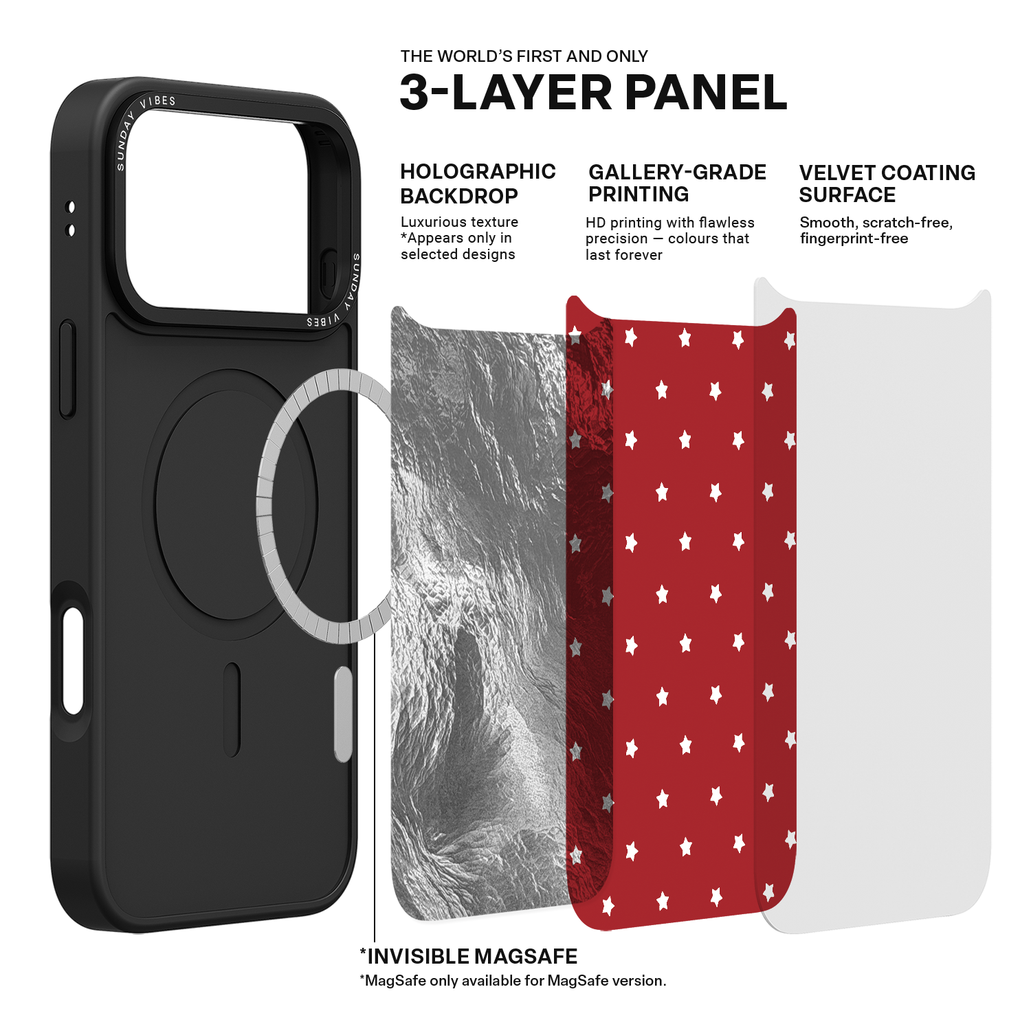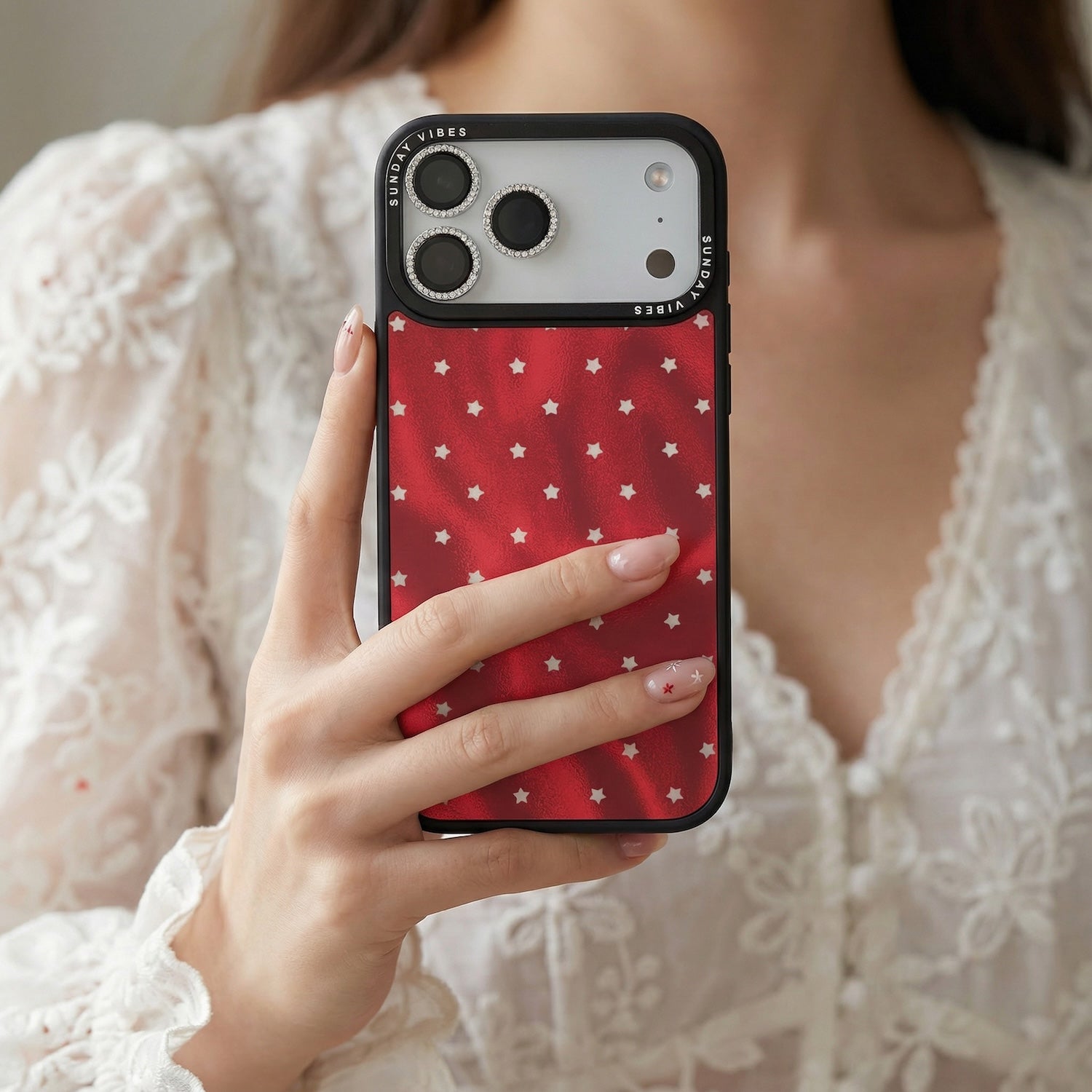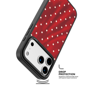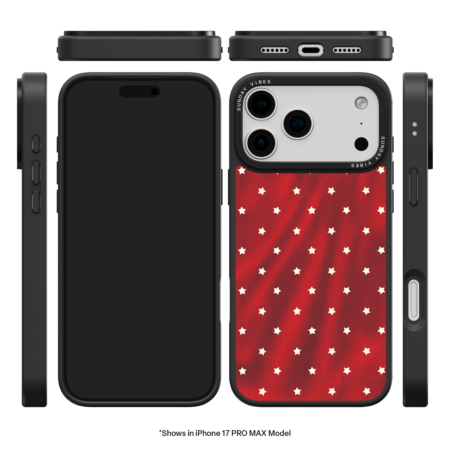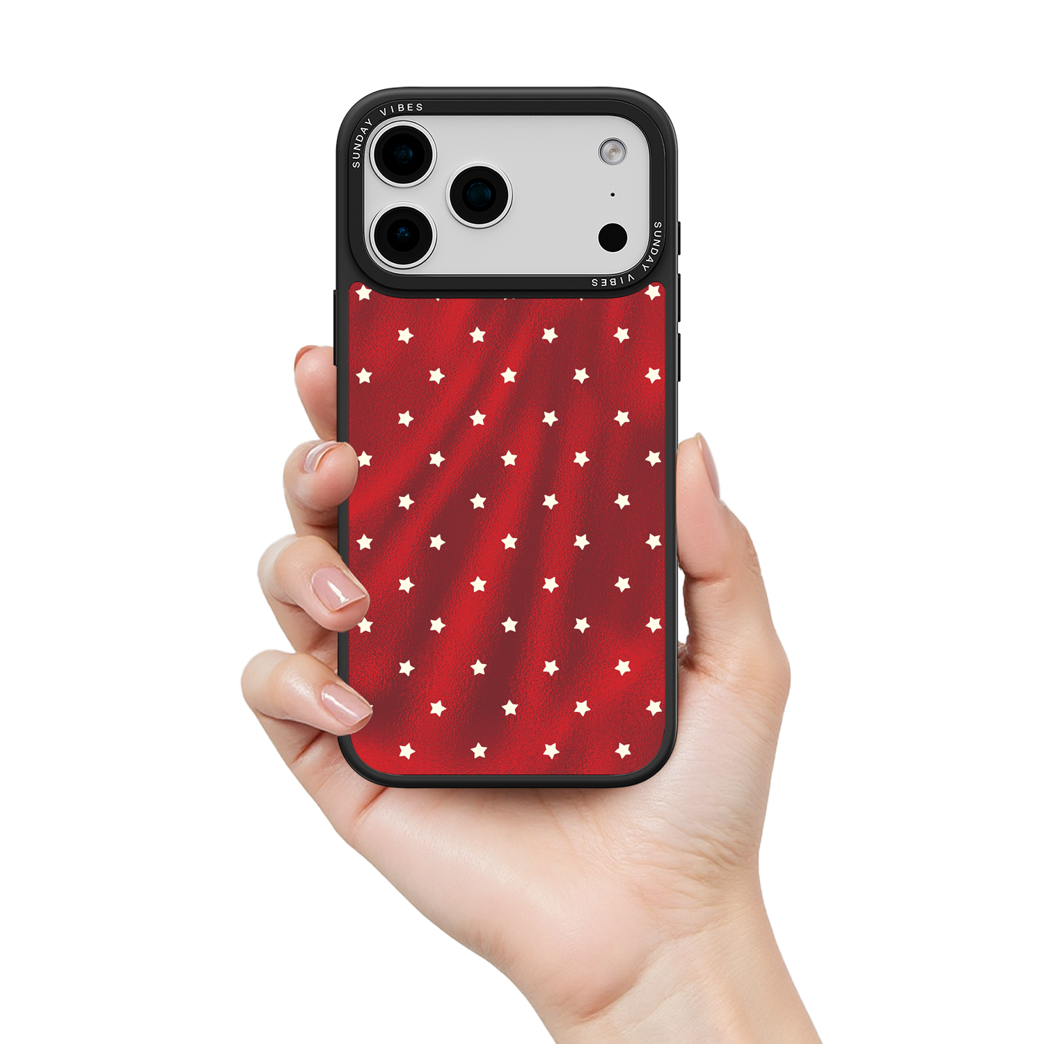 Elevate your style with the captivating Ruby Starfield iPhone Case. The rich, transparent red allows the shimmering holographic background to shine through, creating incredible depth, while white stars add a classic touch. This glamorous, light-shifting design makes a sophisticated statement, perfect for those who appreciate dynamic aesthetics.