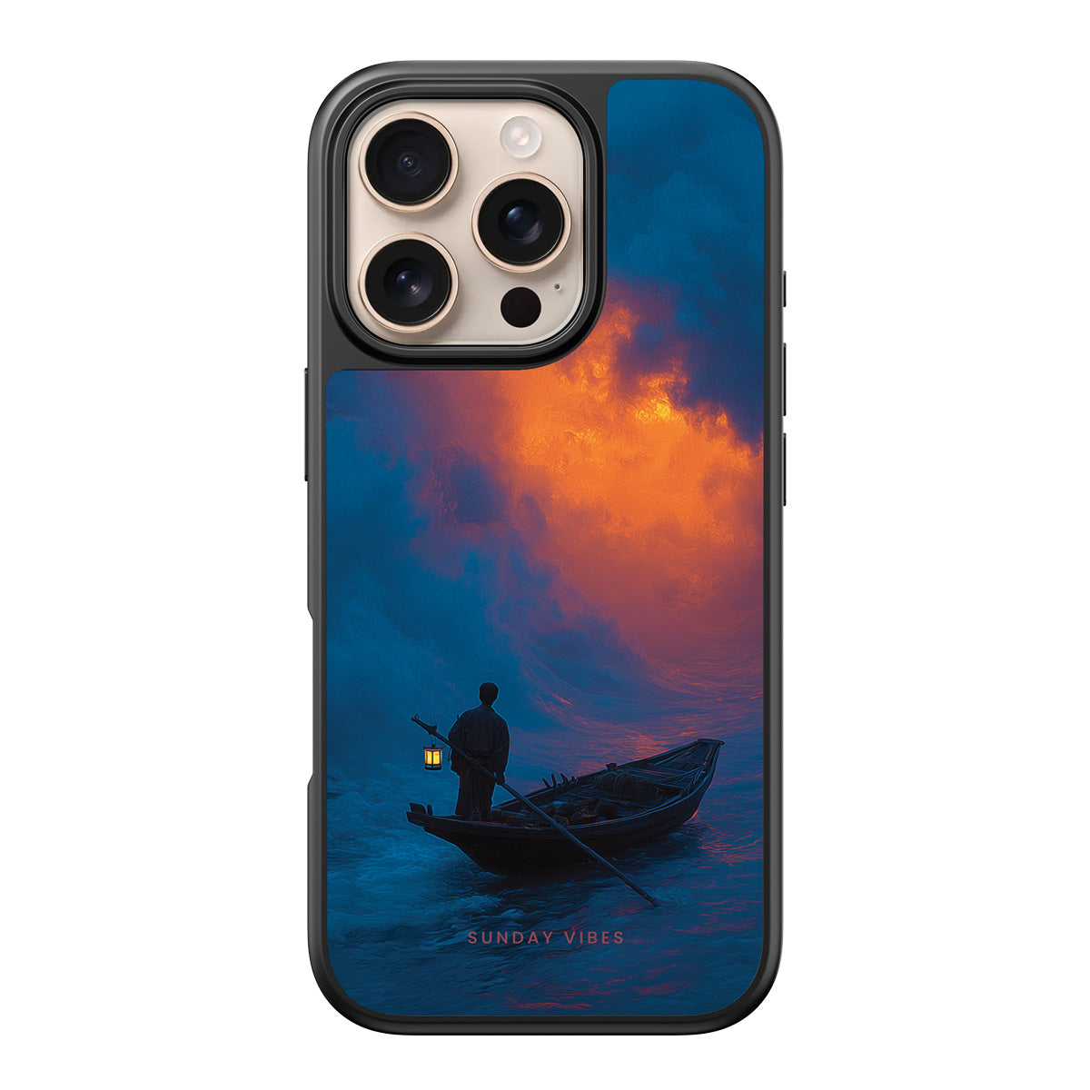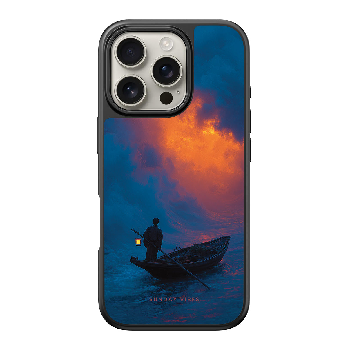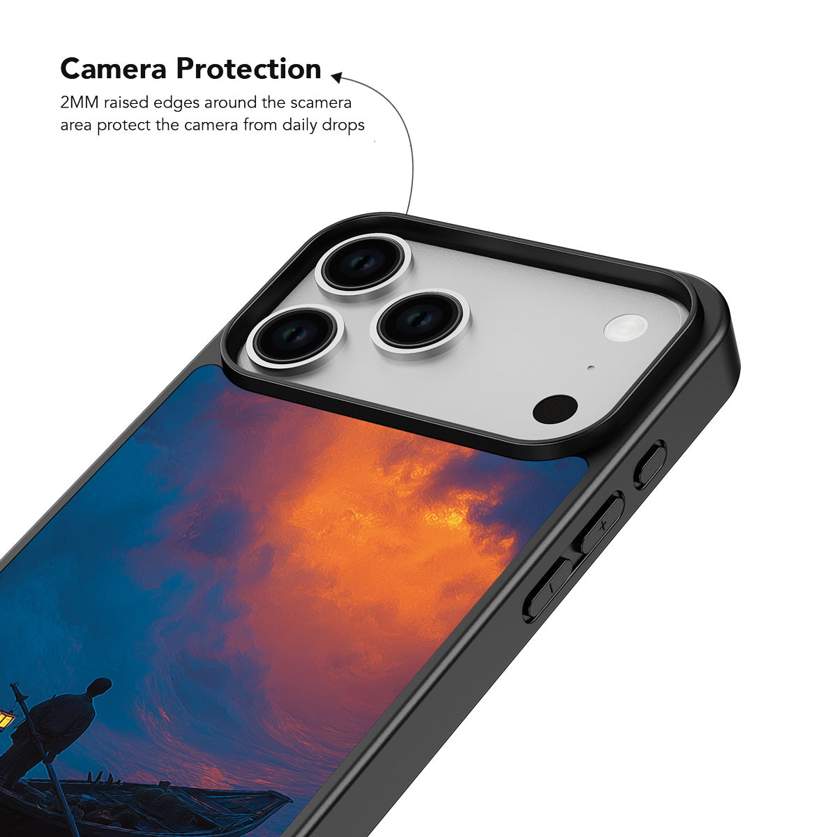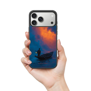 Embark on a tranquil journey with the Serene Voyage iPhone Case. Its surface depicts a solitary figure on a boat, navigating the waters under a dramatic sky ablaze with hues of orange and blue at dusk. This evocative scene exudes a sense of calm and contemplation. Constructed with shock - absorbent edges, it offers reliable protection against daily impacts. The case's slim profile ensures easy handling and portability, making it a perfect accessory for those seeking a blend of artistic beauty and practical safeguarding.