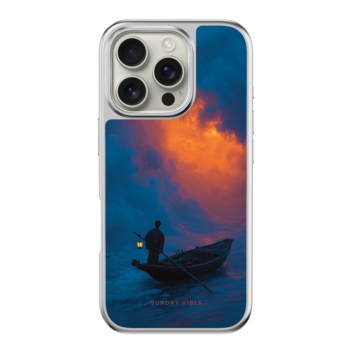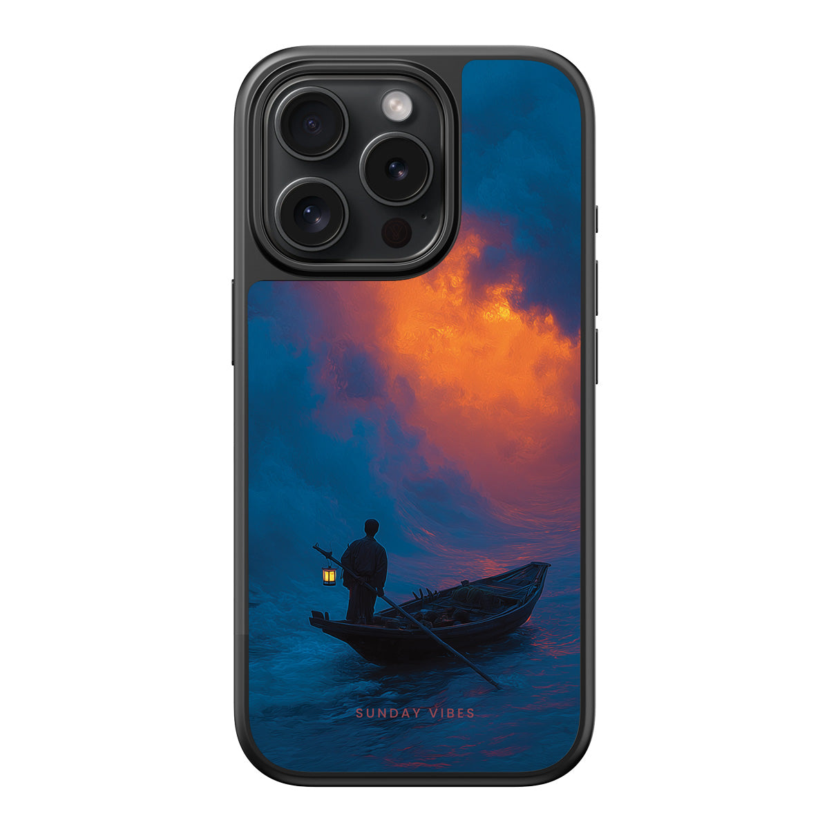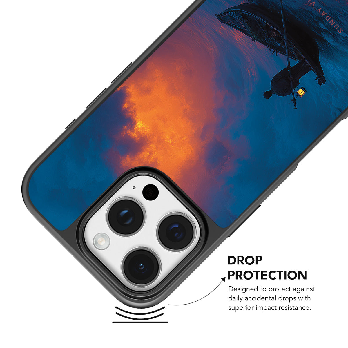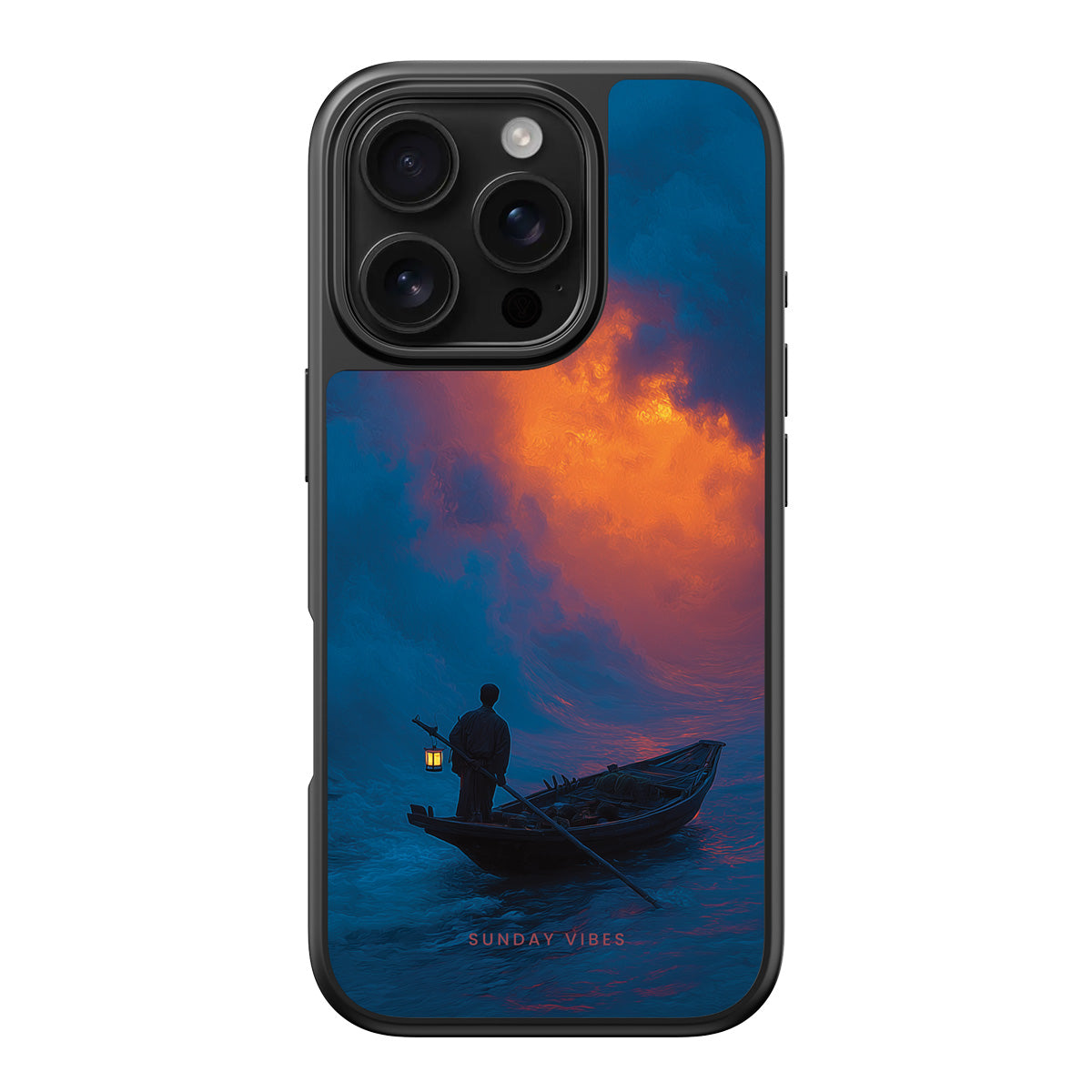Embark on a tranquil journey with the Serene Voyage iPhone Case. Its surface depicts a solitary figure on a boat, navigating the waters under a dramatic sky ablaze with hues of orange and blue at dusk. This evocative scene exudes a sense of calm and contemplation. Constructed with shock - absorbent edges, it offers reliable protection against daily impacts. The case's slim profile ensures easy handling and portability, making it a perfect accessory for those seeking a blend of artistic beauty and practical safeguarding.