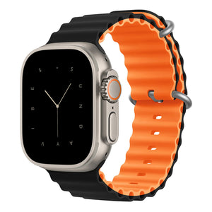 Make a bold statement with the Black & Orange Silicone Ocean Band. Durable, waterproof silicone ensures comfort and resilience. Perfect for active lifestyles. Secure fit, dynamic design. Upgrade your Apple Watch.