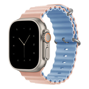 Designed for both adventure and style, the Silicone Ocean Band in Pink Sand & Blue Fog offers durability and all-day comfort. Made from high-performance fluoroelastomer, this lightweight, sweat- and water-resistant band provides a secure fit for any activity. Its flexible tubular design enhances mobility, while the corrosion-resistant buckle and adjustable loop keep it firmly in place. Whether you’re exploring the outdoors or tackling daily tasks, this dual-tone band blends performance with a modern aesthetic.