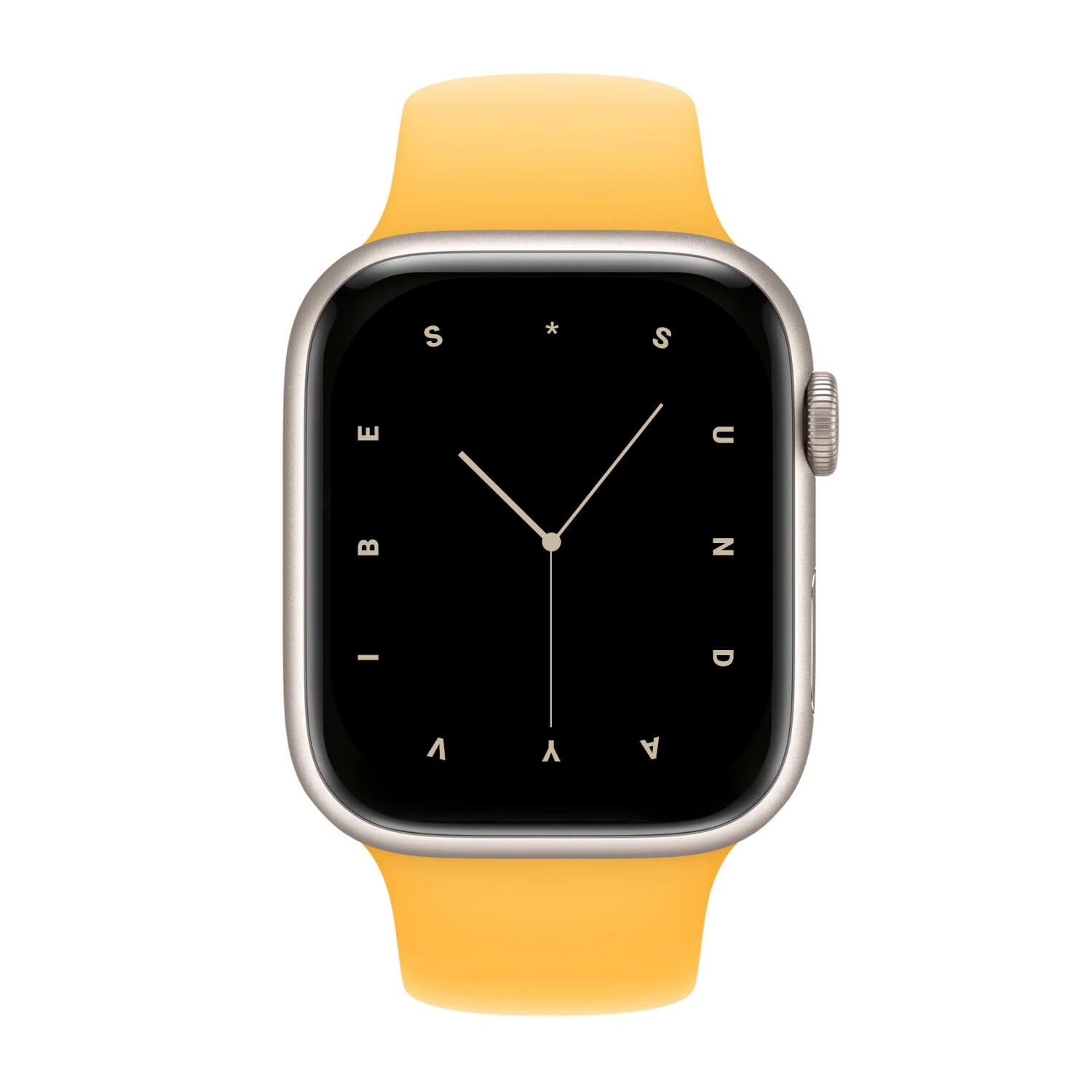 Brighten up your Apple Watch with the Silicone Sport Band in Sunshine. Made from high-performance silicone, this lightweight, sweat- and water-resistant band ensures all-day comfort, while the pin-and-tuck closure provides a secure and adjustable fit. The vibrant sunshine yellow adds a cheerful and stylish touch to any outfit, making it perfect for workouts, office wear, and everyday wear.