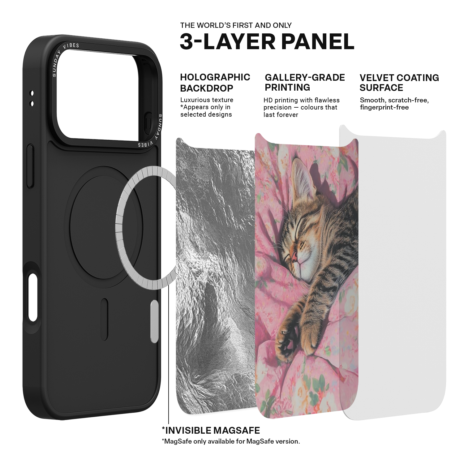 Our globally pioneering three‑layer back panel technology combines: Laser‑textured base layer – adds depth and dimensionality to the design (effects may vary depending on artwork). Ultra‑high‑definition gallery‑grade print layer – delivers vivid, lifelike colours and striking detail. Velvet skin‑feel protective coating – provides scratch resistance and fingerprint protection while offering a soft, refined touch.