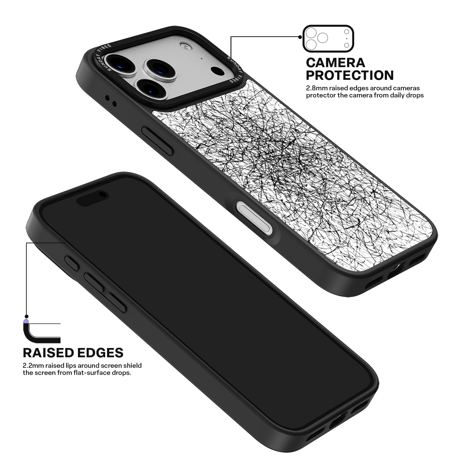 Engineered with a robust camera ring in a raised design, this protective structure shields your camera from impacts. The three-dimensional surround elevates the protruding lens by approximately 2.4mm, while the durable materials ensure reliable protection against accidental drops.