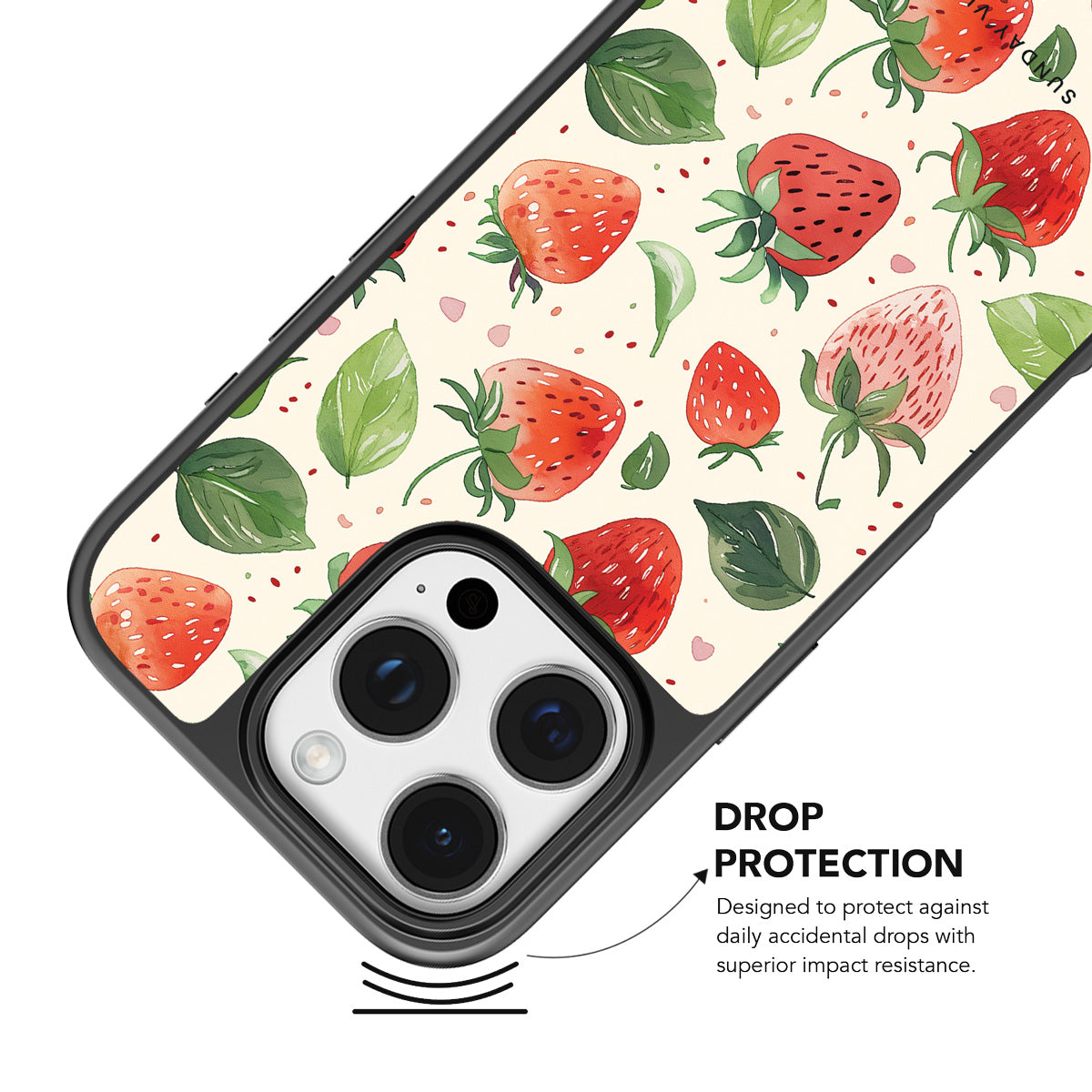 Sweeten your style with the “Strawberry Fields” iPhone case, featuring vibrant, hand-painted strawberries and lush green leaves. This case brings a fresh and fruity charm to your phone while ensuring durable protection for everyday use.
