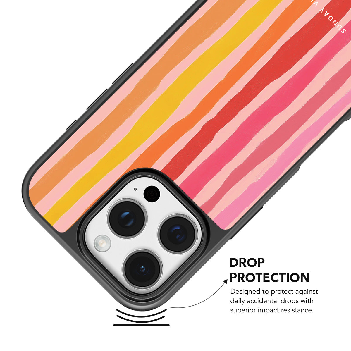 This iPhone case is a visual delight, featuring vertical brushstrokes in a spectrum of warm hues—from soft pinks to vibrant oranges and sunny yellows. The design evokes the enchanting colors of an Australian sunset, bringing a touch of natural beauty to your device. Crafted with a durable build and shock - absorbent edges, it offers reliable protection against daily impacts. Its slim profile ensures easy portability, fitting snugly in your pocket or bag. A perfect accessory for fashion - conscious Australians, it seamlessly combines artistic flair with practical protection.