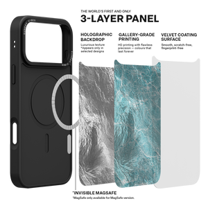 Our globally pioneering three‑layer back panel technology combines: Laser‑textured base layer – adds depth and dimensionality to the design (effects may vary depending on artwork). Ultra‑high‑definition gallery‑grade print layer – delivers vivid, lifelike colours and striking detail. Velvet skin‑feel protective coating – provides scratch resistance and fingerprint protection while offering a soft, refined touch.