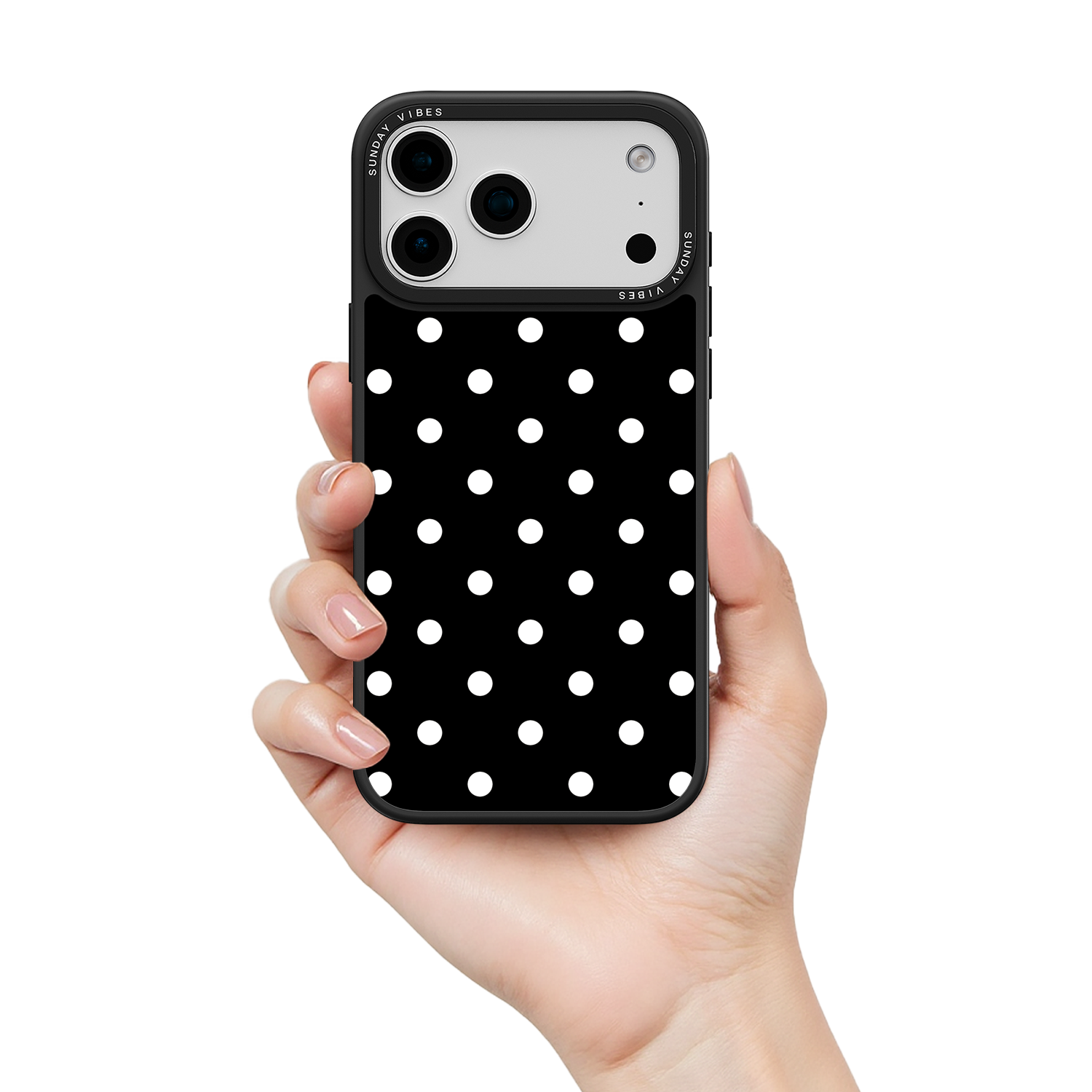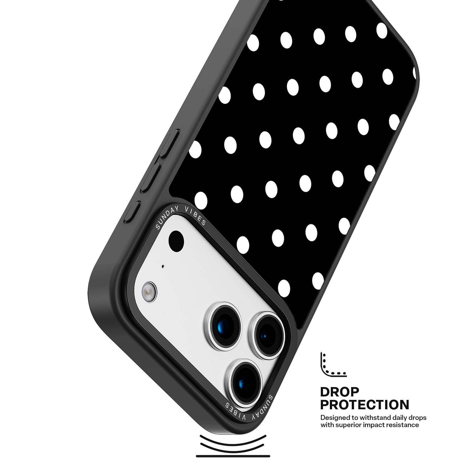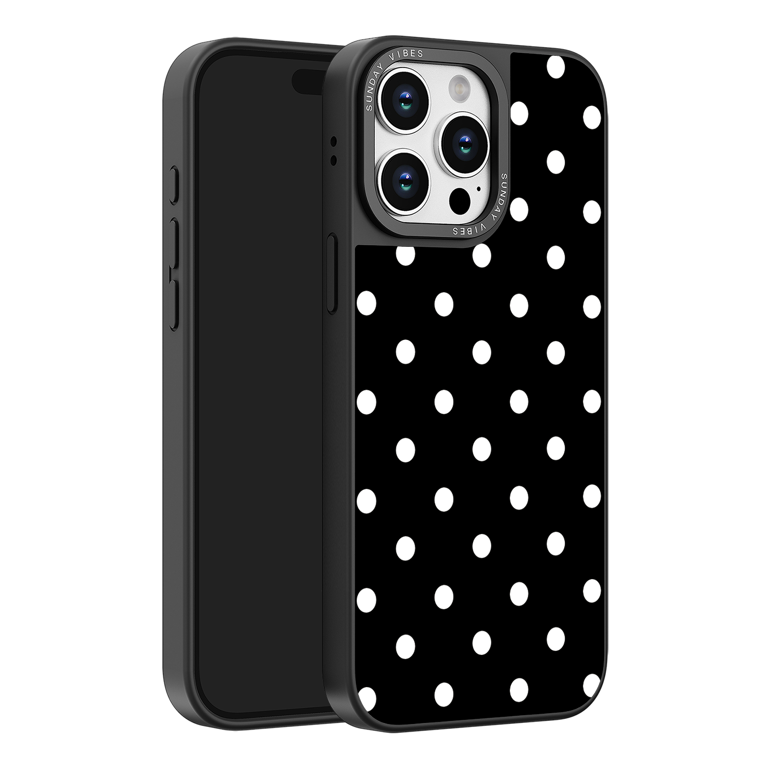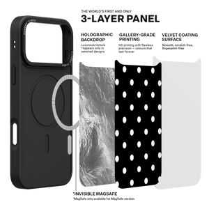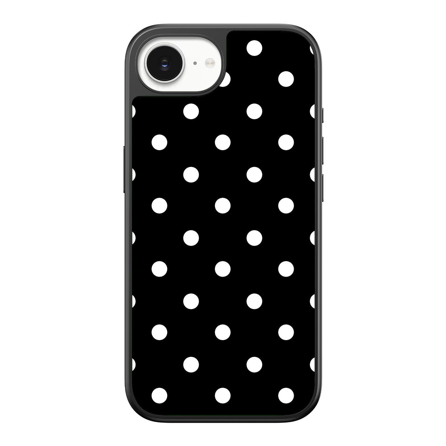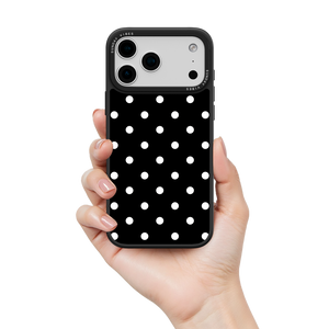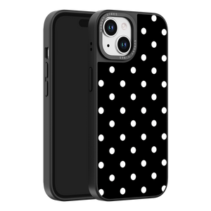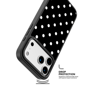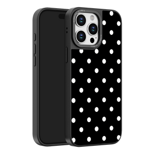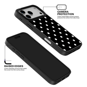 Adorn your device with the crisp, sophisticated elegance of the Tuxedo Dot iPhone Case. This timeless design features bold white polka dots set against a deep, rich black background, creating an instantly stylish and high-contrast aesthetic that never goes out of fashion. This beautiful look is preserved by the case's premium 3-layer back panel: a base layer for protection, a middle ultra HD gallery print layer, and a velvet smooth anti-scratch and anti-fingerprint top coating.