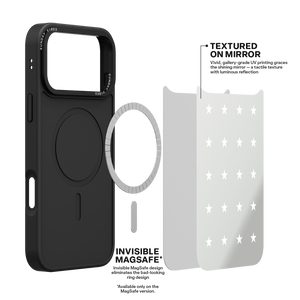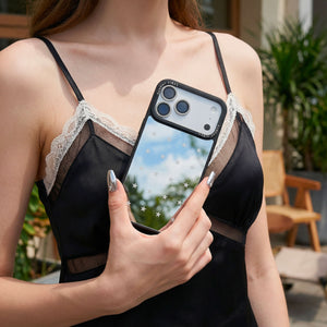 *Mirror Case Disclaimer: Our Mirror Case is designed as a fashion accessory, not a true glass mirror. The back panel is made from PVC plastic, which means it may show fingerprints or light scratches over time — just like a regular mirror surface. The reflection may appear slightly distorted due to the printed design or MagSafe ring. It’s not intended for checking your reflection, but for adding a chic, mirror‑inspired vibe to your phone.